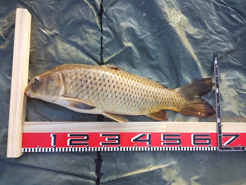 撤収作業を始めると鯉の群れが浮いてきて餌を探してる感じ(大半の餌は既に流された)。