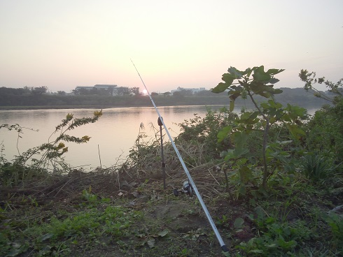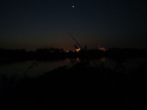 5時頃準備完了。 どこに着水してるか分からん超遠投と足元寄りの2本竿で勝負。
