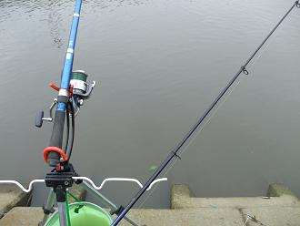 増水気味なのとゴミが多量に絡みつくので竿受けを使って、川の中ほどを適当に狙った。