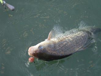 針に寄せ食わせ兼用で浮子鯉を付けてようやく釣れた。